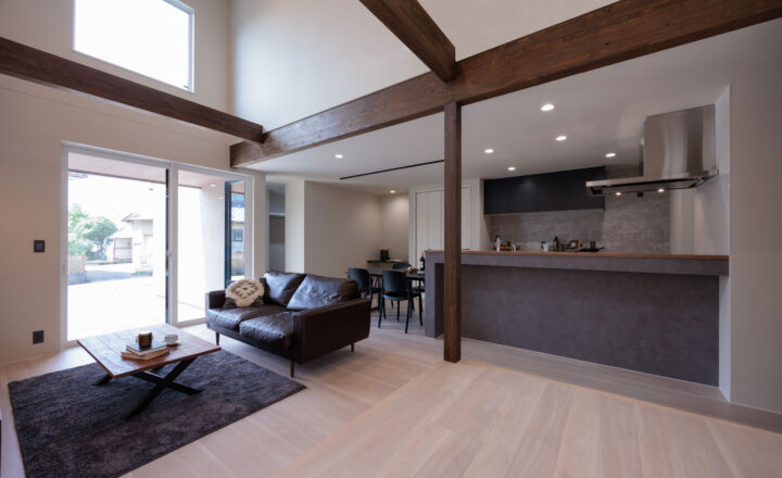 開放的な吹き抜けと窓で、家族が豊かな暮らしを送れるリビングファーストの住まい。 お子様の遊び場としても活用できる小上がりや、庭へのデッキスペースを設け、ご自宅での過ごし方の幅が広がります。